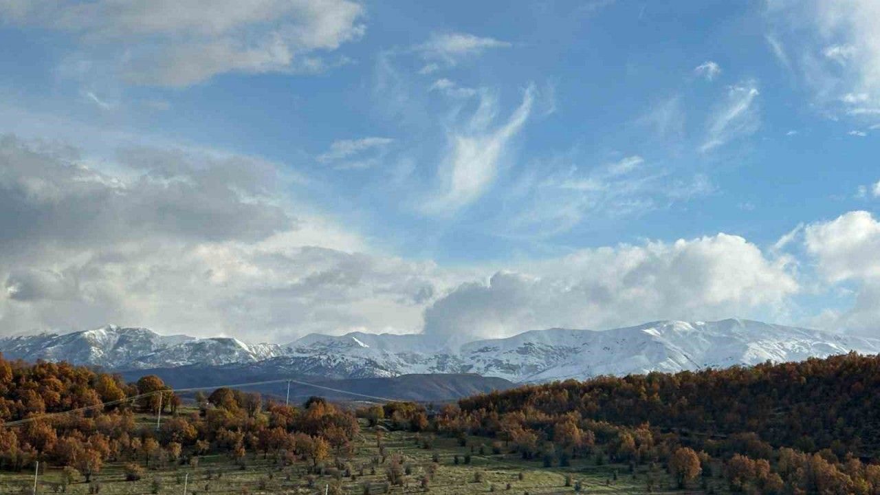 Son günlerde bölgede etkili olan yağışlı ve kapalı hava sabah saatlerinde yerini güneşe bırakınca, dağların üzerindeki kar örtüsü daha net şekilde görünmeye başladı. Mevsimin geçişini en belirgin şekilde hissettiren manzara, beyaz ve sonbahar renklerinin aynı karede buluşmasıyla dikkat çekti.