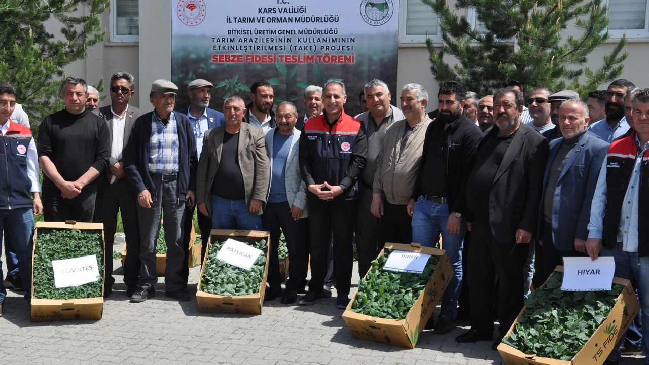 Kars Tarım ve Orman İl Müdürlüğü tarafından üreticilere binlerce sebze fidesi dağıtıldı. Tarım ve Orman Bakanlığı Bitkisel Üretim Genel Müdürlüğü’nün "Tarım Arazilerinin Kullanımının Etkinleştirilmesi (TAKE)" projesi kapsamında İl Tarım ve Orman Müdürlüğü tarafından sebze ve meyve fidesi teslim töreni düzenlendi. İl Müdürlüğü bahçesinde düzenlenen tören saygı duruşunda bulunulması ve İstiklal Marşının okunmasıyla başladı. Törenin açılış konuşmasını yapan İl Müdürü Enver Aydın, sebze ve meyve üretimini artırmak için 41 üreticiye 27 bin sebze ve meyve fidesi dağıttıklarını söyledi. Yapılan konuşmaların ardında sebze fidesi dağıtımın geçildi. Tarım ve Orman Müdürlüğü’nce üreticilere sebze ve meyve fideleri teslim edildi.