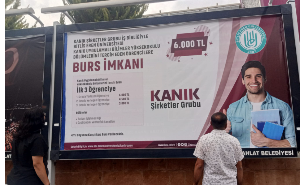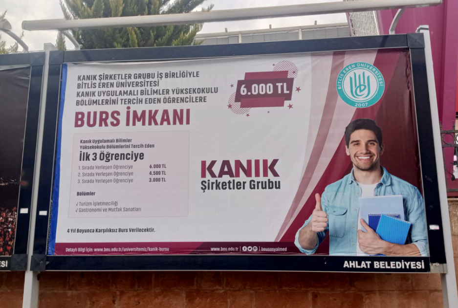 Burs duyurusu, Bitlis il merkezi ve tüm ilçelerde billboardlara asılarak geniş kitlelere ulaştırıldı. Bu görsel duyurular sayesinde öğrencilerin burs imkanından haberdar olması ve başvuru sürecine katılması hedefleniyor. Kanık Şirketler Grubu’nun bu desteği, gençlerin eğitim yolculuğuna güçlü bir başlangıç sunarken bölgenin turizm ve gastronomi potansiyelini de geleceğe taşıyor.