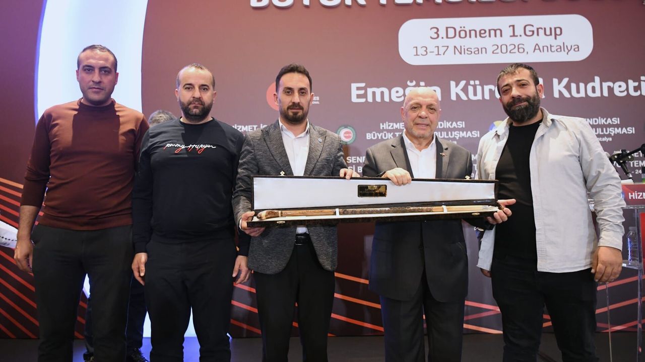 Programda, Hizmet-İş Sendikası Bitlis İl Başkanı Halil İbrahim İvak tarafından, Türk boyları motifleriyle süslenmiş Ahlat bastonu Mahmut Arslan’a hediye edildi.