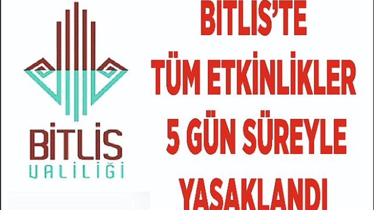 Bitlis Valiliğinden yapılan açıklamada, il genelinde tüm etkinliklerin 5 gün süreyle yasaklandığı belirtildi.