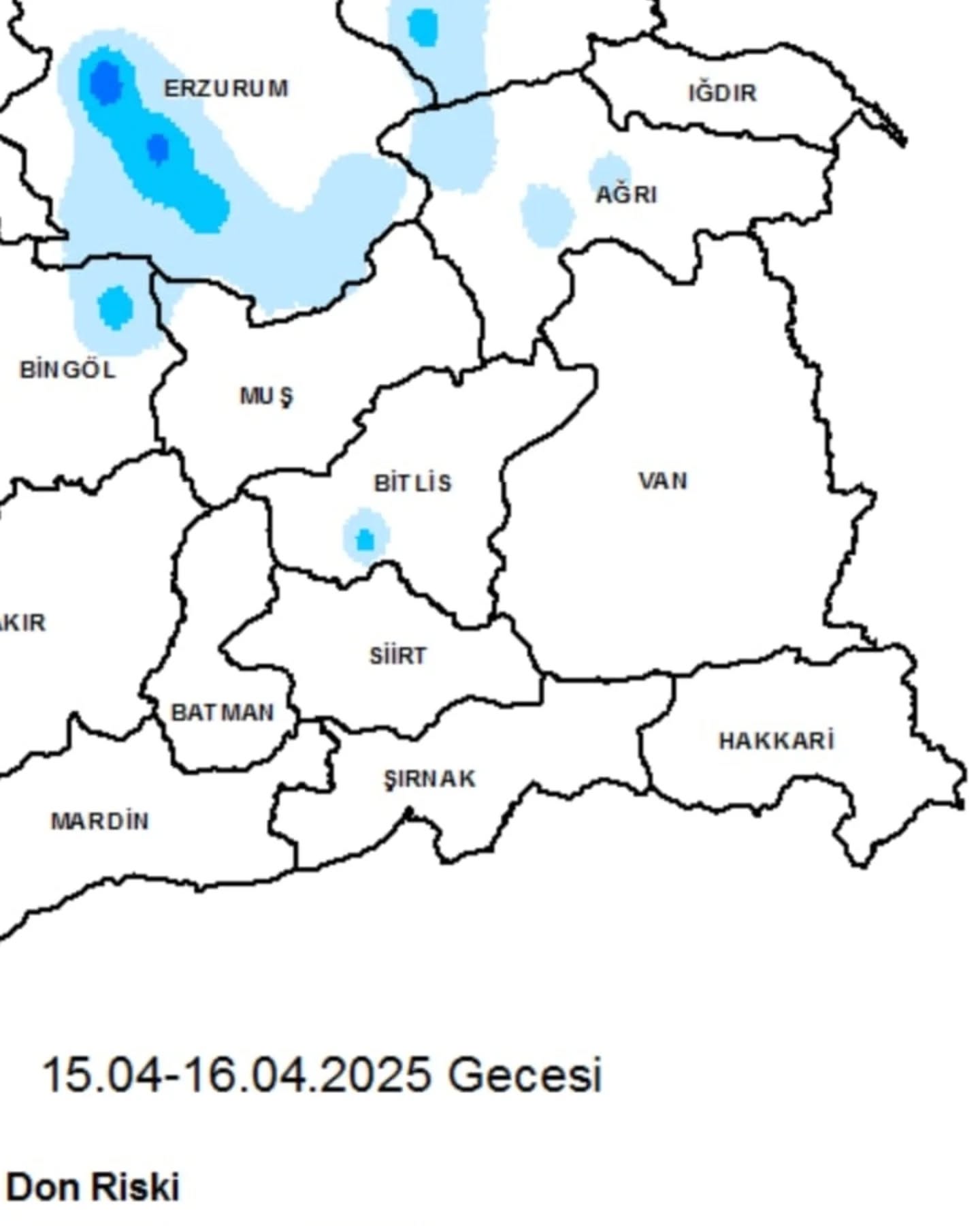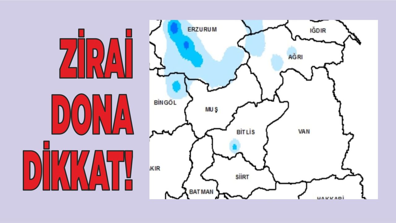 Bitlis Tarım ve Orman Müdürlüğü’nden yapılan duyuru da Meteoroloji Genel Müdürlüğü veri ve tahminlerine göre Cumartesi'yi Pazar'a bağlayan gece ile Pazar'ı Pazartesi'ye bağlayan gece zirai don olması ihtimalinin yüksek olduğu belirtildi. Yapılan uyarı duyurunda şu ifadelere yer verildi, “ Çiftçilerimizin dikkatine!! Meteoroloji Genel Müdürlüğü tarafından İlimizin de içinde olduğu bazı bölgeler için zirai don uyarısı yapılmıştır. Yapılan son değerlendirmelere göre ülkemizi etkisi altına alan soğuk havayla birlikte Cumartesi'yi Pazar'a bağlayan gece ile Pazar'ı Pazartesi'ye bağlayan gece, Marmara'nın güney ve doğusu, iç Anadolu, iç Ege, Göller Yöresi, Karadeniz'in iç kesimleri ile Doğu Anadolu'da zirai don hadisesi beklendiğinden tarımsal faaliyetlerle ugraşan vatandaşlarımızın, Meteoroloji Genel Müdürlüğü tarafından il ve ilçelere yönelik hazırlanan sıcaklık tahminlerini dikkatle takip etmeleri ve zirai don riskine karşı gerekli tedbirleri almaları önem arz etmektedir.”
