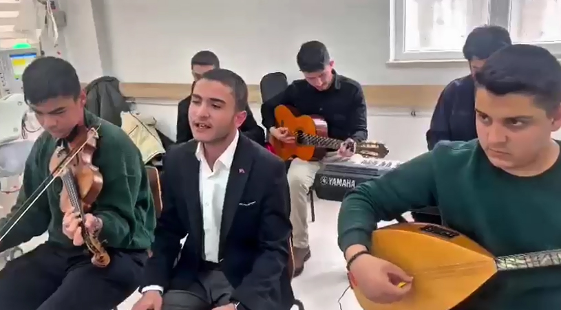Okulun müzik bölümü öğrencileri, hastanede diyaliz tedavisi gören hastalar için mini bir konser verdi. Hastane ortamında yankılanan ezgiler, tedavi gören hastalara moral olurken, müzik dolu anlar yorgun kalplere nefes oldu.