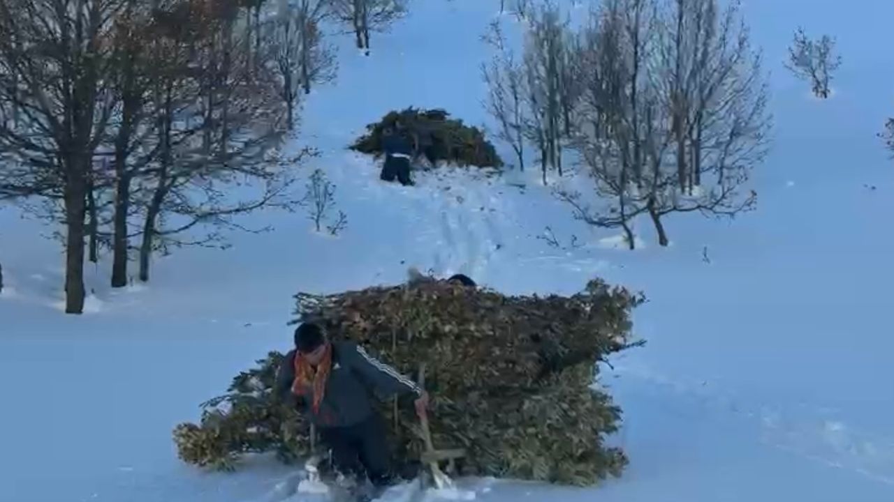 Kentte etkili olan yoğun kar yağışıyla birlikte kar kalınlığı bazı bölgelerde 2 metreyi aşarken, Yalnızçamlar köyünde besiciler zorlu kış şartlarına karşı yıllardır uygulanan geleneksel yöntemlerle mücadele ediyor. Besiciler, yaz aylarında traktörlerin ulaşamadığı dağlık alanlarda biçtikleri otları ve topladıkları yapraklı meşe dallarını tepelere istifleyerek kışa hazırlanıyor.