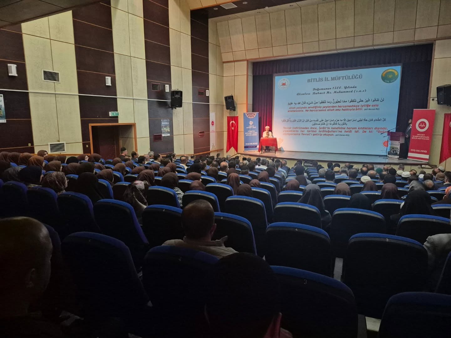 Bitlis İl Müftülüğü tarafından “1–7 Ekim Camiler ve Din Görevlileri Haftası” dolayısıyla İl Kültür ve Turizm Müdürlüğü Konferans Salonu’nda anlamlı bir program düzenlendi. Kur’an-ı Kerim tilavetiyle başlayan program, Mevlid-i Nebi ve Din Görevlileri Haftası konulu sinevizyon gösterimiyle devam etti. Açılış konuşmasını İl Müftümüz Kadir Koçak yaptı. Koçak, konuşmasında Mevlid-i Nebi’nin 1500. yılı vesilesiyle camilerin ve din görevlilerinin toplum hayatındaki önemini örneklerle anlattı.