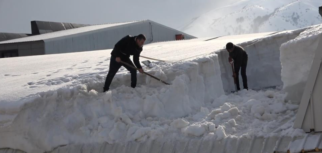 Yüksek binaların çatılarına çıkan vatandaşlar, önlem olarak kendilerine ip bağlayarak kar küreme çalışması yapması dikkat çekiyor. Kar yağışının durmasıyla birlikte Organize Sanayi Bölgesi (OSB) esnafı, vatandaşların can ve mal güvenliğini korumak amacıyla çatılarda kar temizliği çalışmalarına hız verdi.