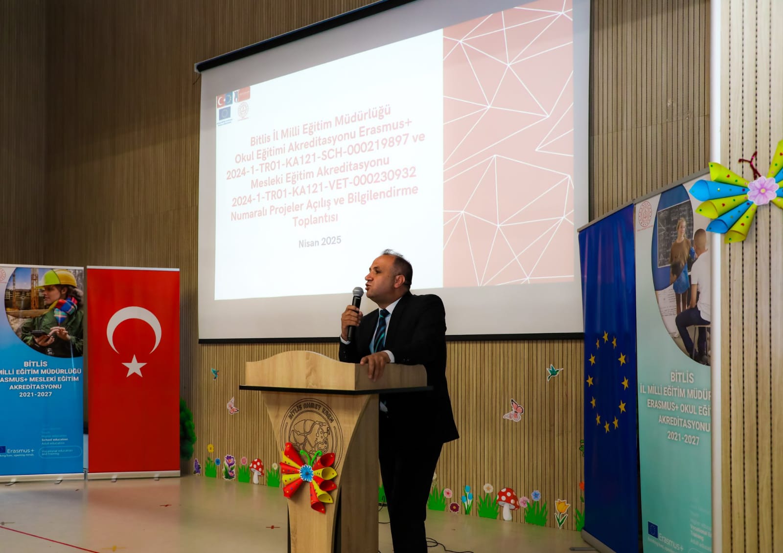 Toplantıda, Avrupa Birliği’nin eğitim, öğretim, gençlik ve spor alanlarını kapsayan en önemli programlarından biri olan Erasmus+’ın 2024 yılı kapsamında Bitlis’te uygulanacak projeler tanıtıldı. Özellikle okul eğitimi ve mesleki eğitim alanlarında akreditasyon almış kurumların yürüteceği faaliyetler hakkında detaylı bilgiler paylaşıldı.Bitlis İl Milli Eğitim Müdürü Vedat Kaya konuşmasında, Erasmus+ projelerinin uluslararası deneyim kazandırma, eğitim kalitesini artırma ve kurumlar arası iş birliğini güçlendirme açısından büyük önem taşıdığını vurguladı. Toplantıda ayrıca, akreditasyon sürecinde dikkat edilmesi gereken hususlar, proje yönetimi, hareketlilik faaliyetleri ve raporlama süreçleri konusunda teknik bilgilendirmeler yapıldı. Erasmus+ 2024 projeleri kapsamında Bitlis’teki birçok okulun, öğrenci ve öğretmen hareketliliği ile Avrupa ülkeleriyle iş birliklerini güçlendirmesi hedefleniyor.