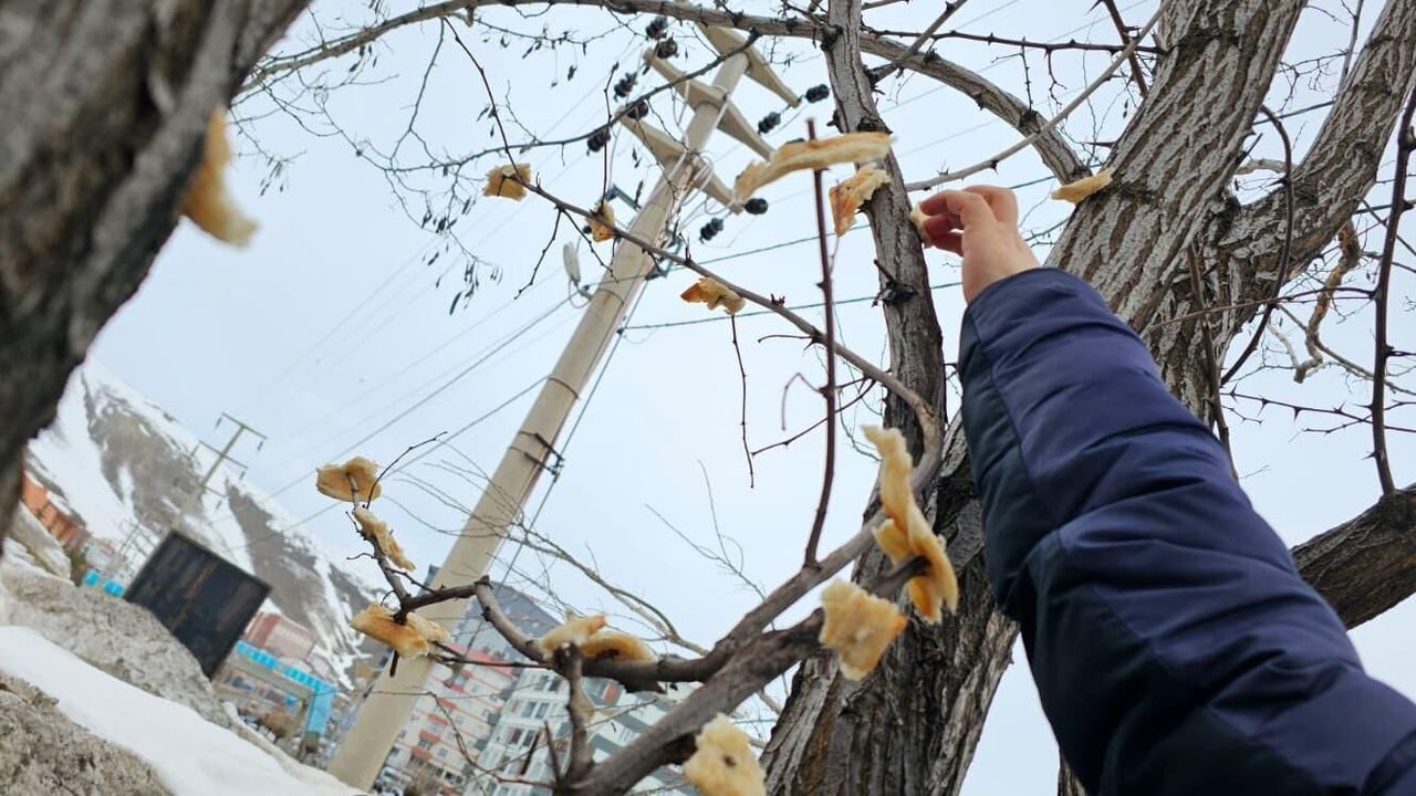Ağaç dallarına bırakılan yiyecekler sayesinde kuşların beslenmesine katkı sağlanırken, doğaya yönelik farkındalık oluşturulması da amaçlanıyor.