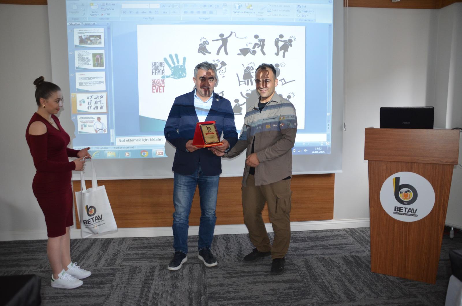 Program sonunda BETAV Başkanı Güven Güngördü, katılımcılara gösterdikleri ilgiden dolayı teşekkür ederek, eğitmen Mücahit Yılmaz’a katkılarından ötürü plaket takdim etti.