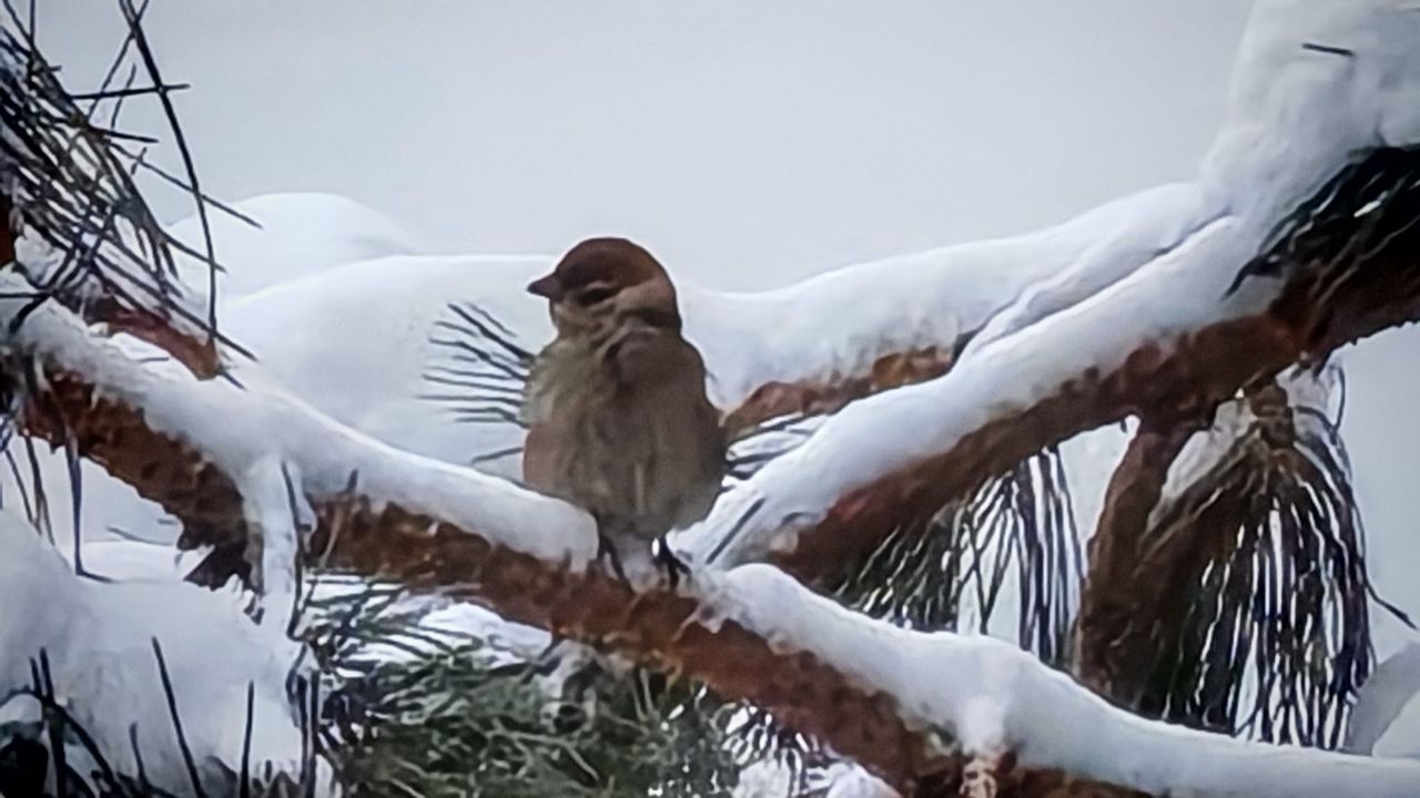 Bitlis’te etkili olan kar yağışı hayatı zorlaştırırken, yiyecek bulmakta güçlük çeken serçeler karla kaplı ağaç dallarına sığındı.