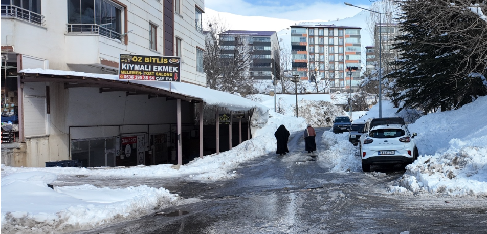 Yoğun kar yağışı Bitlis kent merkezinde de hayatı zorlaştırdı. Cadde ve sokakların büyük bölümü karla kaplanırken, park halindeki birçok araç kar örtüsünün altında kaldı. Bazı binaların çatılarında oluşan uzun buz sarkıtları ise dikkat çekti.