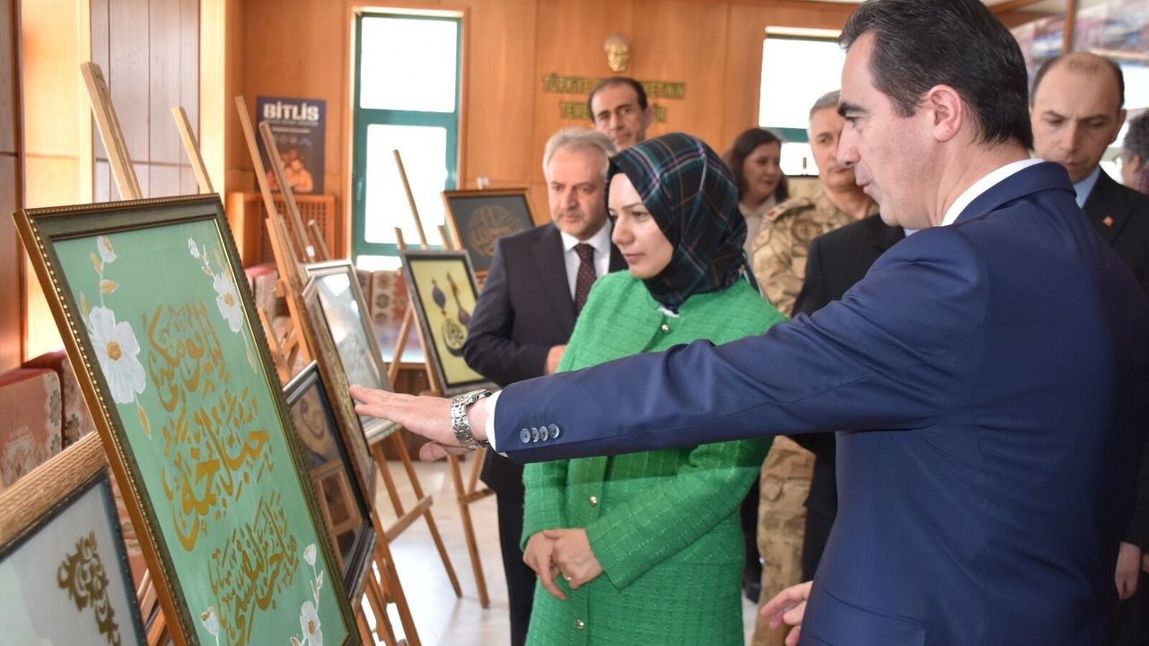 Bitlis İl Milli Eğitim Müdürlüğü ve Bitlis Halk Eğitimi Merkezi iş birliğiyle hazırlanan sergide, Ebru, Tezhip ve Hat Sanatları Atölyelerinde usta öğreticiler ve kursiyerler tarafından oluşturulan eserler ziyaretçilerin beğenisine sunuldu.