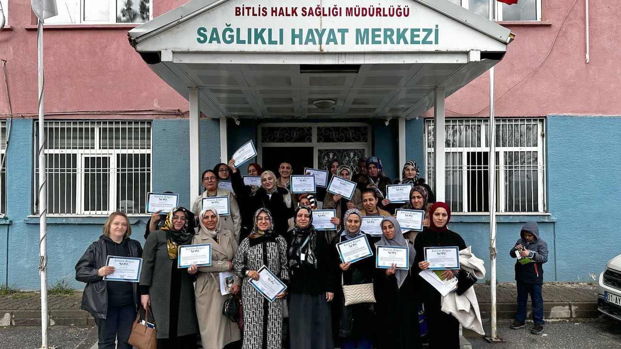 Sertifika töreni katılımcıların hatıra fotoğrafları çektirmesiyle sona erdi. Bitlis’te sağlıklı yaşam bilincinin yaygınlaştırılması adına önemli bir adım olan SAHA, önümüzdeki dönemlerde yeni gönüllülerle eğitimlerine devam etmeyi hedefliyor.