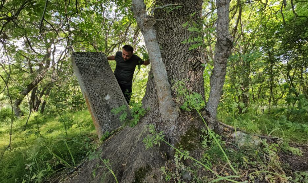 Bitlis’in Tatvan ilçesine bağlı Tokaçlı köyünde bulunan tarihi mezarlar, büyüyen ağaçlar arasında adeta kayboldu.