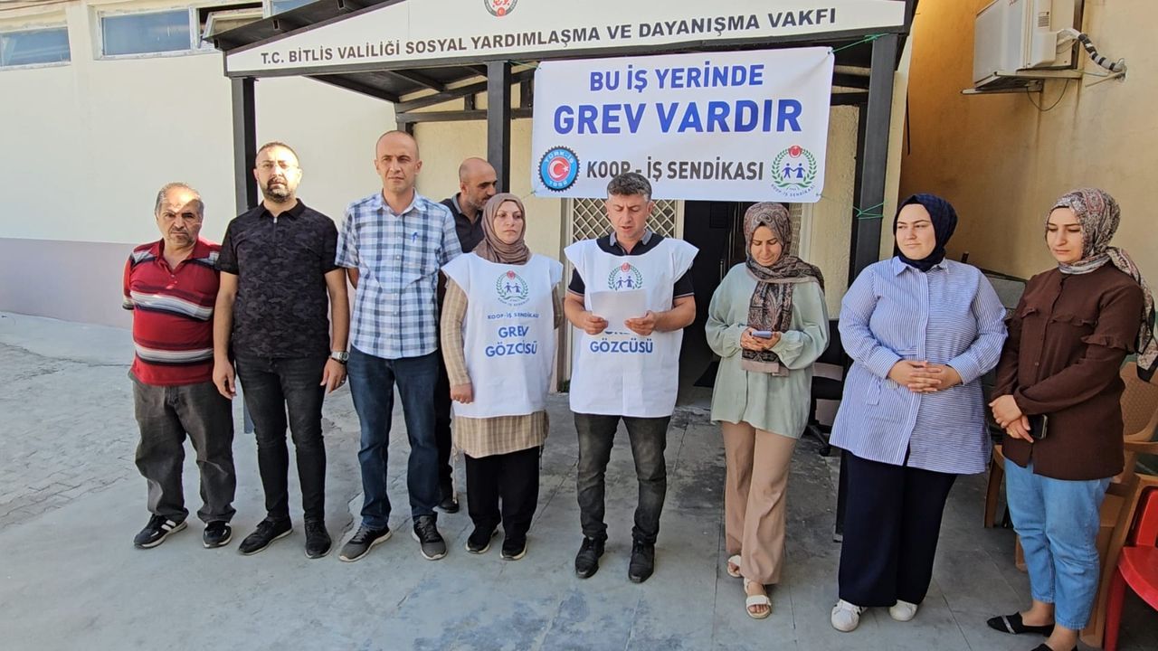 Aile ve Sosyal Hizmetler Bakanlığı’na bağlı Sosyal Yardımlaşma ve Dayanışma Vakıfları’nda (SYDV) çalışanlar, sendikanın aldığı karar doğrultusunda iş bırakma eylemi başlattı. Türkiye genelinde 1003 vakıfta yaklaşık 10 bin işçinin katıldığı grev kapsamında Bitlis’teki SYDV emekçileri de bugün sabah itibarıyla iş bıraktı.
