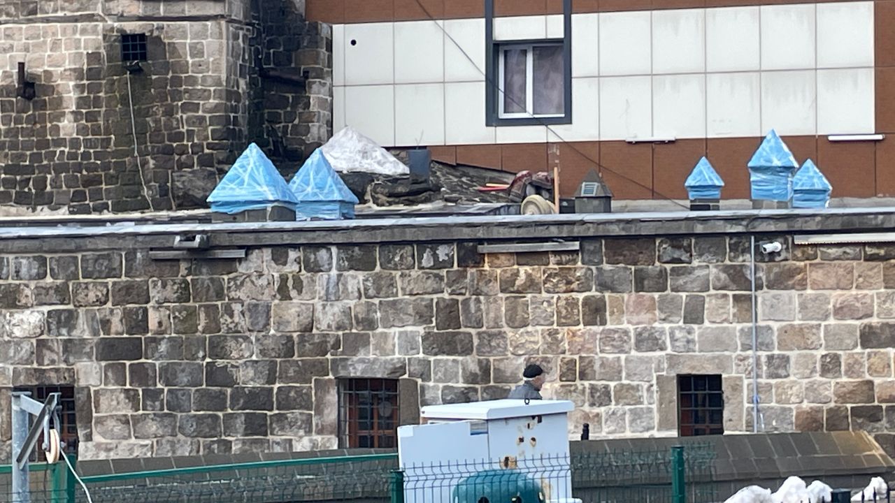 Bitlis merkezde bulunan tarihi hanların bacalarına, yağmur yağışı nedeniyle içeri su girmesini önlemek amacıyla geçici önlem alındı.
