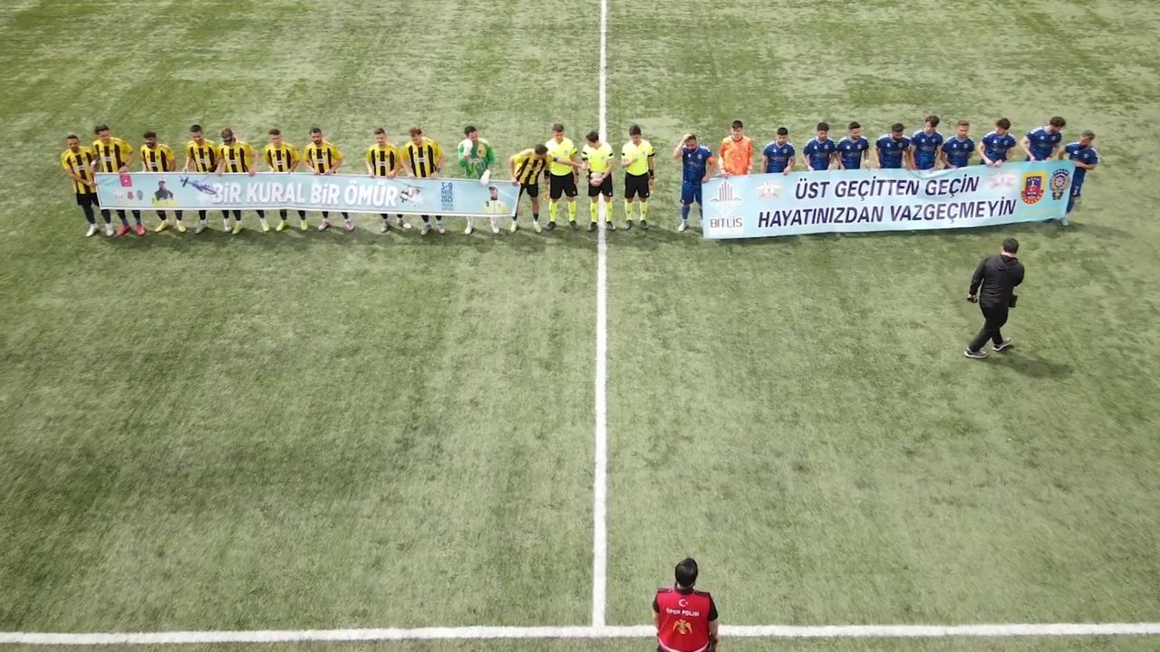 Müsabaka öncesi futbolcular, “Bir Kural, Bir Ömür” ve “Üst Geçitten Geçin, Hayatınızdan Vazgeçmeyin” yazılı pankartlarla sahaya çıkarak trafikte can kayıplarının önüne geçilmesi gerektiğine dikkat çekti.