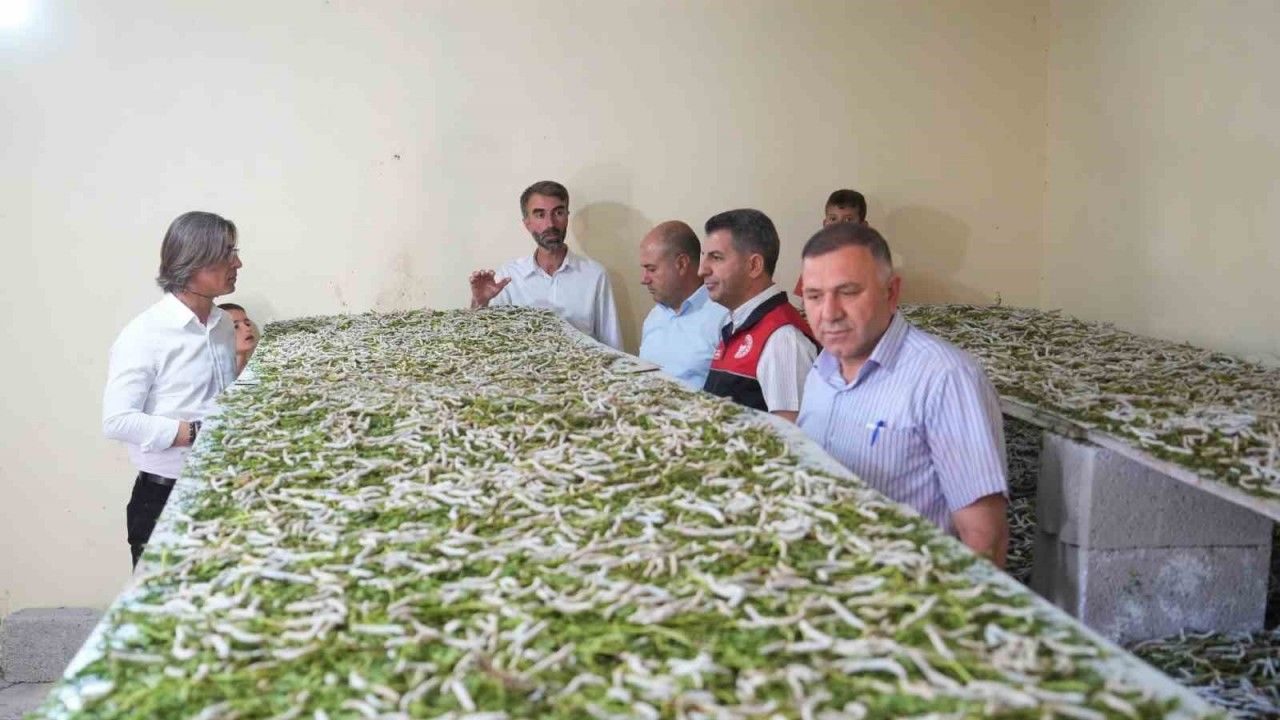 İpek böceği yetiştiriciliği tesisini ziyaret eden Muş Tarım ve Orman İl Müdürü Necattin Gönç, "Bakanlığımızın politikalarının temel amaçlarından biri de kırsalda kalkınmayı sağlamaktır. Kırsal alanlar bizim için oldukça önemlidir; çünkü asıl üretim potansiyelimizin bulunduğu bölgeler buralardır. Bu nedenle kırsalda kalkınmanın sağlanması, alternatif gelir kaynaklarının oluşturulması, altyapının iyileştirilmesi ve kırsaldaki aile işletmelerimizin güçlendirilmesi amacıyla çeşitli çalışmalar yürütülmektedir. Bu kapsamda yürüttüğümüz çalışmalardan biri de ipek böceği yetiştiriciliğinin geliştirilmesi ve yaygınlaştırılmasıdır. İpek böceği yetiştiriciliğinin birçok avantajı bulunmaktadır. Ailenin herhangi bir ferdi tarafından kolaylıkla yapılabilecek bir faaliyet olması, ek gelir kaynağı sağlaması ve yılda yalnızca 50 gün süren bir tarımsal üretim olması dikkat çekicidir. Ayrıca ürün alım garantili olup, Bakanlığımız tarafından desteklenmektedir. 2024 yılı birim fiyatlarına göre, yaş koza kilogramı başına Bakanlığımız tarafından 1.400 TL destek verilmektedir. Üretimin gen kaynakları kapsamında değerlendirilmesi durumunda ise TAYGEM tarafından ek olarak 700 TL destek sağlanmaktadır. İlimizin coğrafi yapısı, iklim şartları ve bitki deseni, ipek böceği yetiştiriciliği için oldukça elverişlidir. Bursa KOZ ile iş birliği içerisinde yumurta paketlerimizi temin ederek ilimizde birkaç noktada deneme alanları oluşturduk. Şu an bulunduğumuz yer de bu deneme alanlarından biridir. Buradaki asıl amacımız, ilimizde tarımsal üretimde çeşitliliği artırmak ve üreticilerimize ek katkı sağlamaktır. Nihai hedefimiz ise sürdürülebilir üretimi teşvik ederek ilave bir ekonomik kapı açmak, uzun vadede üretimde sürdürülebilirliği sağlayarak işletmelerimize ekonomik katkı sunmak ve ilimizin tarımsal potansiyelini daha fazla ortaya çıkarmaktır. Bu faaliyeti inşallah canlandırarak ilimiz için yeni bir ekonomik alan oluşturmuş olacağız" dedi.