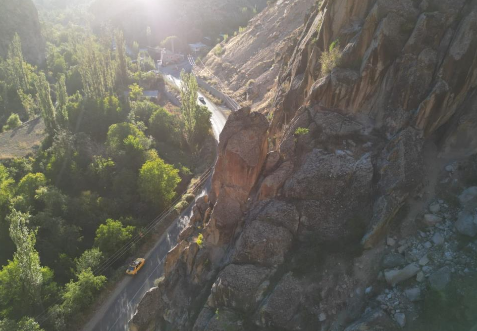 Erzurum’un Uzundere ilçesi Pehlivanlı Mahallesi’nde dağ yamacında çatlayan ve kırılan dev kayalar vatandaşları tedirgin ediyor.