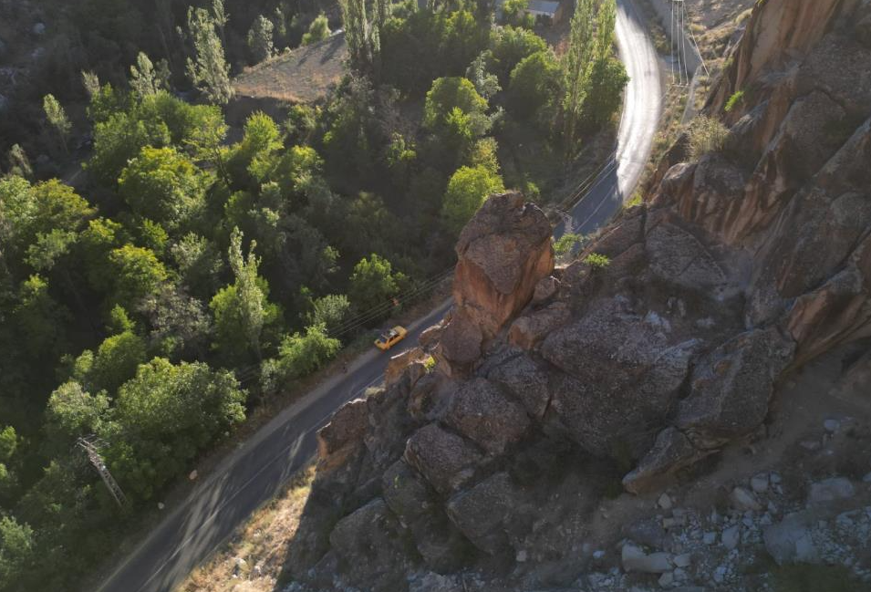 Uzundere ilçesine bağlı Pehlivanlı Mahallesi’nden geçen 7 köyün yolu ile bazı vatandaşların ev ve bahçeleri, dağ yamacındaki dev kayaların tehdidi altında. Binlerce ton ağırlığındaki kayaların bulunduğu bölgede tehlikenin büyüklüğü vatandaşları tedirgin ediyor.