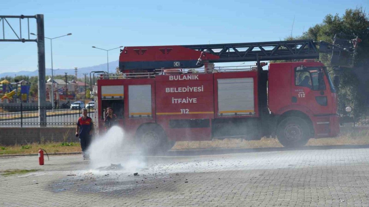 Bulanık Kaymakamlığı ve Sosyal Yardımlaşma ve Dayanışma Vakfı (SYDV) binalarında gerçekleştirilen tatbikat öncesinde İç Güvenlik Uzmanı ve Yangın Eğitmeni Nazlı Bilginer tarafından personele yangınların çıkış sebepleri ve alınacak önlemler hakkında bilgi verildi. Eğitimin ardından Bulanık Belediyesi İtfaiye Müdürlüğü ekiplerinin de desteğiyle kurum bahçelerinde yangın söndürme tatbikatı yapıldı. Tatbikatta, benzinle yakılan ateşe yangın tüpleriyle nasıl müdahale edileceği uygulamalı olarak gösterildi.