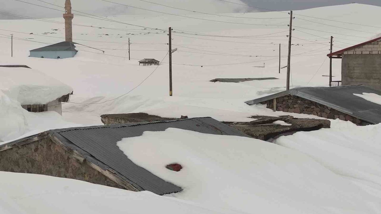 Kışın yoğun kar ve fırtınanın etkisiyle tamamı karla kaplanan Ardahan'ın 2 bin 581 rakımlı Bülbülan Yaylası'ndaki ev ve iş yerleri nisan ayında hala kara gömülü.