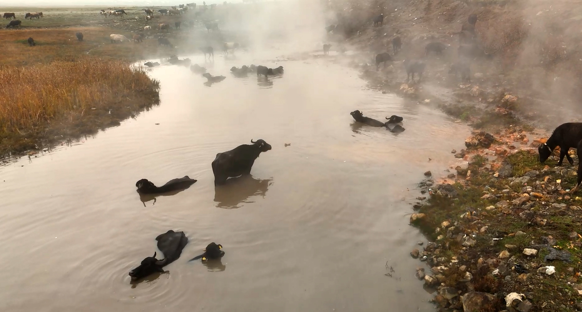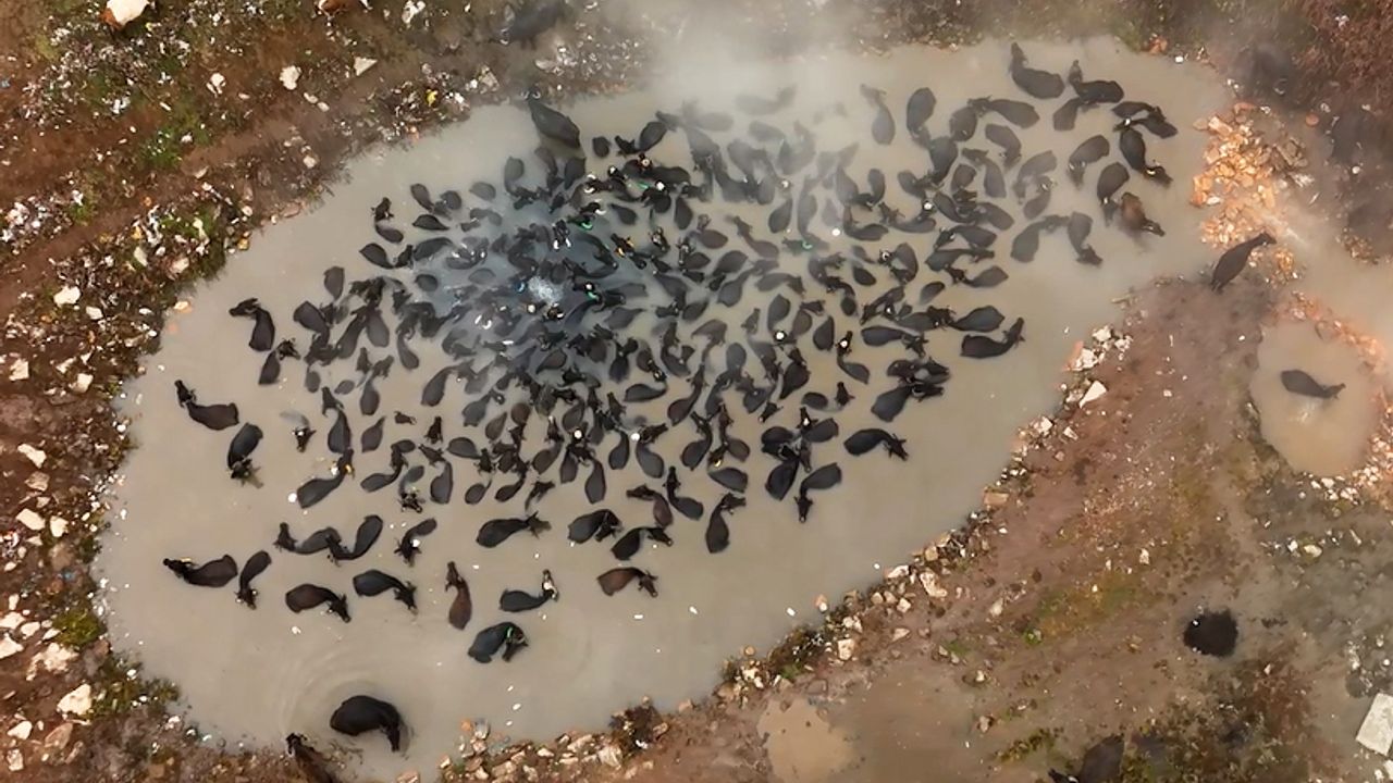 Akademisyen ve fotoğraf sanatçısı Veysel Akşahin, Budaklı Kaplıcası’nda kaplıca keyfi yapan mandaları havadan dronla görüntüledi. Kaplıca yoğun şekilde bulunan mandaların ve çevresindeki büyükbaş hayvanların varlığı Afrika’yı aratmıyor.