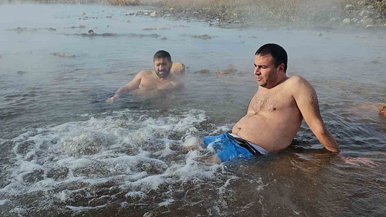 Bitlis'in Güroymak ilçende bulunan doğal kaplıcalara akın eden vatandaşlar kış mevsiminde dondurucu soğukta kaplıca keyfi yaşıyor.