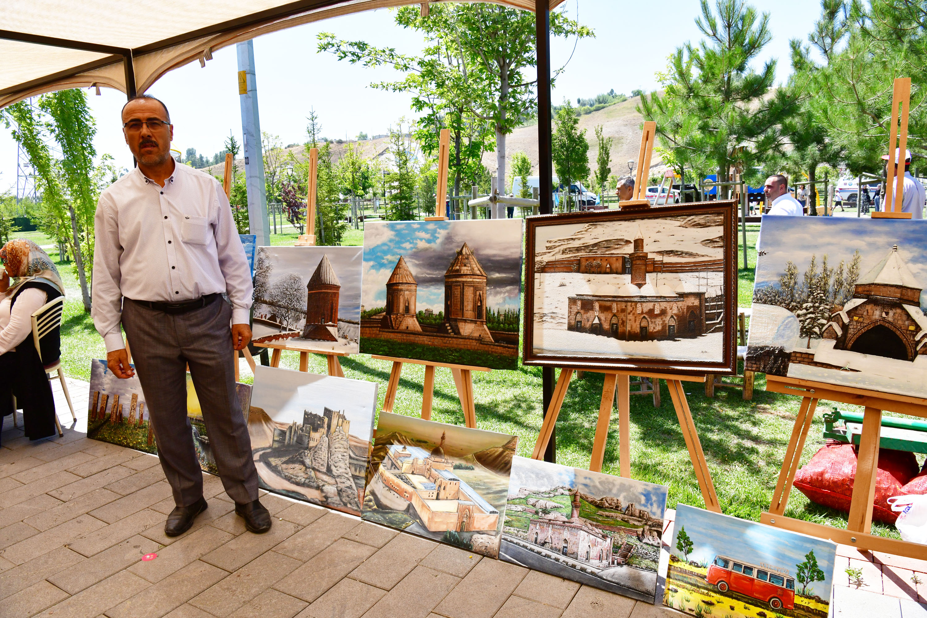 Malazgirt Zaferi'nin 954'ncü yıl dönümü kutlamaları Ahlat ilçesinin Çarho mevkiinde bulunan Recep Tayyip Erdoğan Millet Bahçesi'nde devam ediyor. Alanda kurulan tematik çadırlarda valilik ve belediyeler yöresel ürünleri ve geleneksel lezzetlerini tanıtırken sanatçılar da eserlerini sergileme fırsatı buluyor. Bitlis’in Adilcevaz ilçesinde görev yapan İmam Hatip Aydın Tok’un yaptığı yağlı boya tablolar ziyaretçilerden yoğun ilgi görüyor. Büyük çoğunluğu Bitlis, Van ve bölgedeki tarihi eserlerin tablolarından oluşan yağlı boya resimler ziyaretçiler tarafından ilgiyle izleniyor.