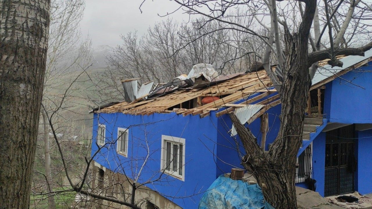 Van’ın Çatak ilçesinde etkili olan fırtına nedeniyle 2 mahallede çok sayıda ev ve ahırda hasar meydana geldi.