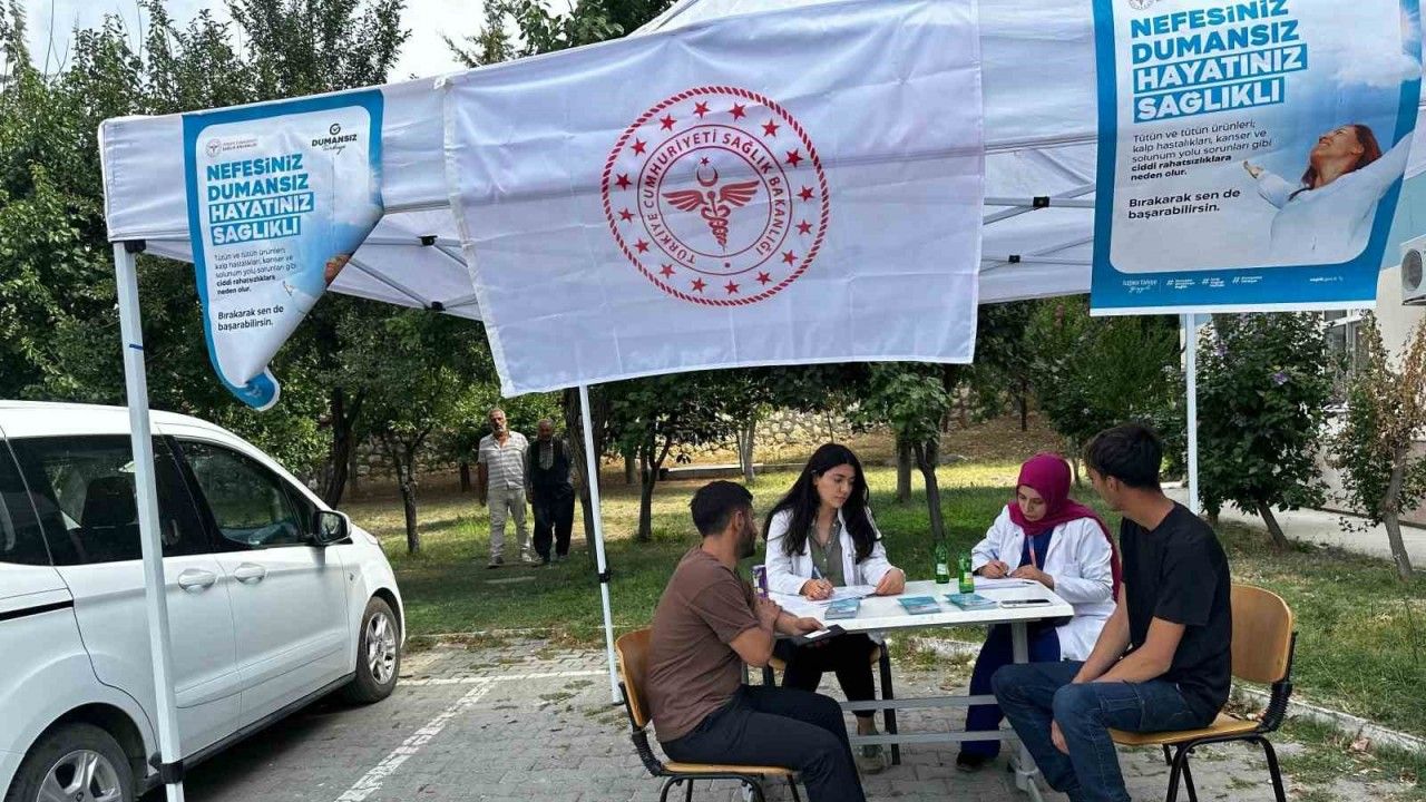 Çemişgezek Toplum Sağlığı Merkezinde görevli Dr. Büşranur Yüksel ve sağlık personelleri, 3-9 Eylül Halk Sağlığı Haftası kapsamında "Nefessiz, Dumansız Hayatınız Sağlıklı" temalı bir etkinlik düzenledi. İlçe merkezinde kurulan bilgilendirme çadırında vatandaşlara sigaranın zararları konusunda farkındalık oluşturmak amacıyla bilgilendirmeler yapıldı, ilçede sigarayı bırakma polikliniği de açılarak, çeşitli broşürler dağıtıldı. Ayrıca sigarayı bırakmak isteyen vatandaşlara yönelik hizmet veren poliklinik hakkında da detaylı bilgiler verildi.