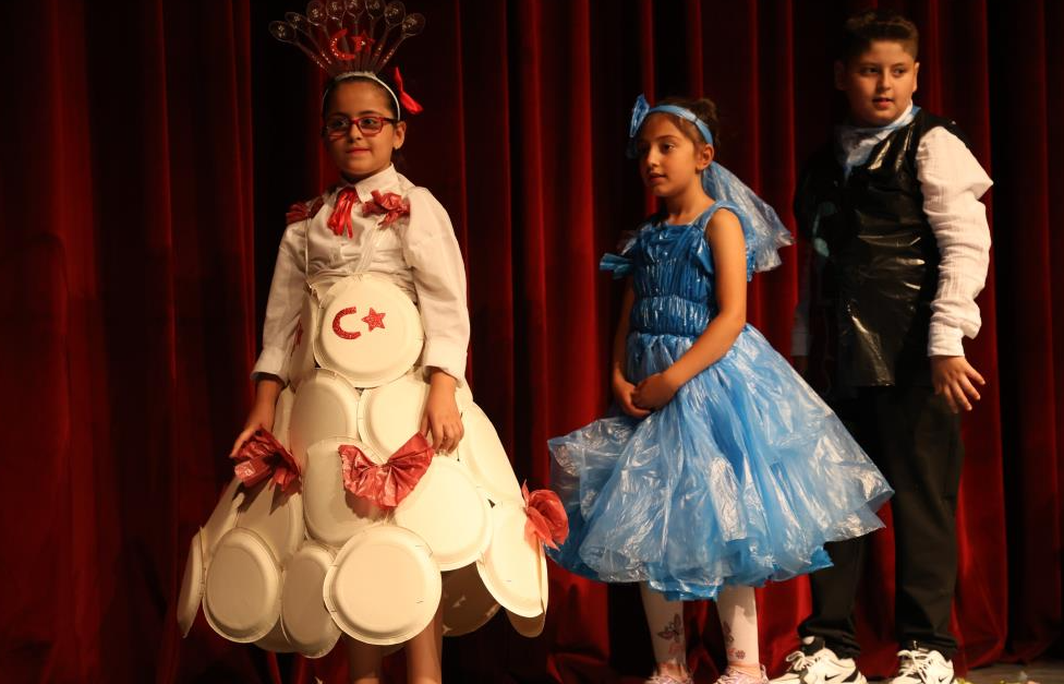 Çevre mesajı ancak böyle verilirdi: İşte miniklerin çevre mesajı: Elazığ’da İsmet Paşa İlkokulu’nun yıl sonu gösterisinde öğrenciler, geri dönüşüm malzemelerinden hazırladıkları kıyafetlerle anlamlı bir defile sundu. Velilerin yoğun katılım gösterdiği etkinlikte çaydaçıra, sema gösterisi, tiyatro ve müzik dinletisi de yer aldı.