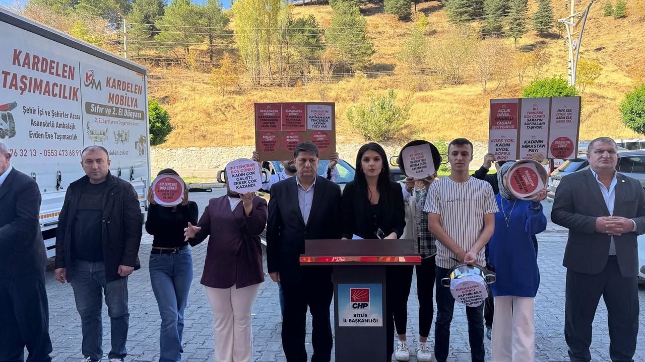 Bitlis CHP Kadın Kolları Başkanı Kader Erdil, “Çocuklar yatağa aç giriyor, kadınlar pazardan eli boş dönüyor, emekliler emeğinin karşılığını alamıyor” dedi. Kadınların hem evde hem iş hayatında görünmeyen emekle ayakta durduğunu vurgulayan Erdil, gelir adaletsizliği ve hayat pahalılığının özellikle kadınları etkilediğini ifade etti.