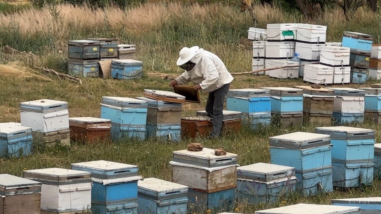 Hakkari’nin Yüksekova ilçesindeki Cilo Dağı eteklerinde aylar öncesi bırakılan kovanlarla bal üretimi yapılıyor.