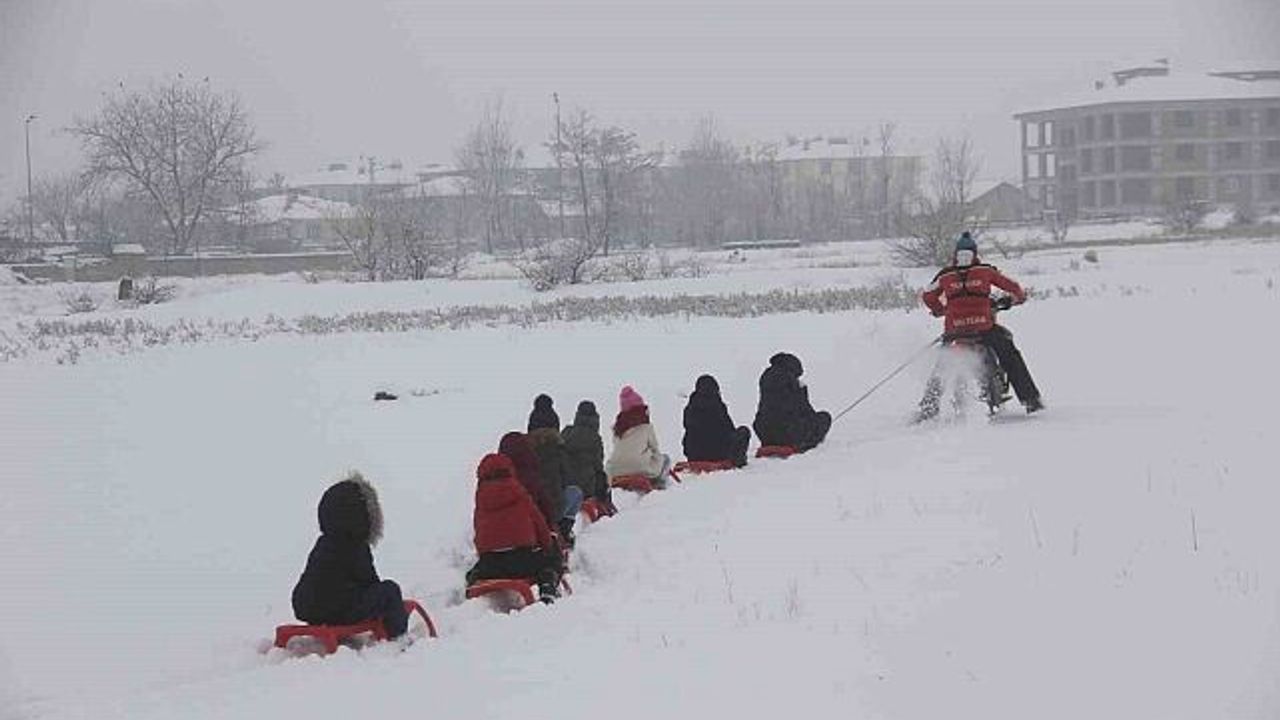 Erzincan merkez Menderes Mahallesi'nde yaşayan çocuklar, kros motorunun arkasına bağlanan kızaklarla kar keyfi yaşadı. Motosikletin arkasına kızakları bağlayan motosiklet tutkunu Cansel Atilla, kızağa binen çocukları kar üzerinde kaydırarak keyifli anlar yaşattı. Atilla isimli vatandaş evlerinde sıkılan çocukları eğlendirmek için farklı bir yol buldu. Kros motorunun arkasına bağladığı kızak ile mahalle içerisinde bulunan boş bir arazide çocukları kaydırarak eğlendirdi. Çocuklar tarafından talebin artması üzerine arkadaşlarından yardım isteyen motosiklet tutkunu Atilla, gelen arkadaşıyla birlikte mahallede ki bütün çocukları kızaklara bindirerek eğlenceli vakit geçirmelerini sağladı.