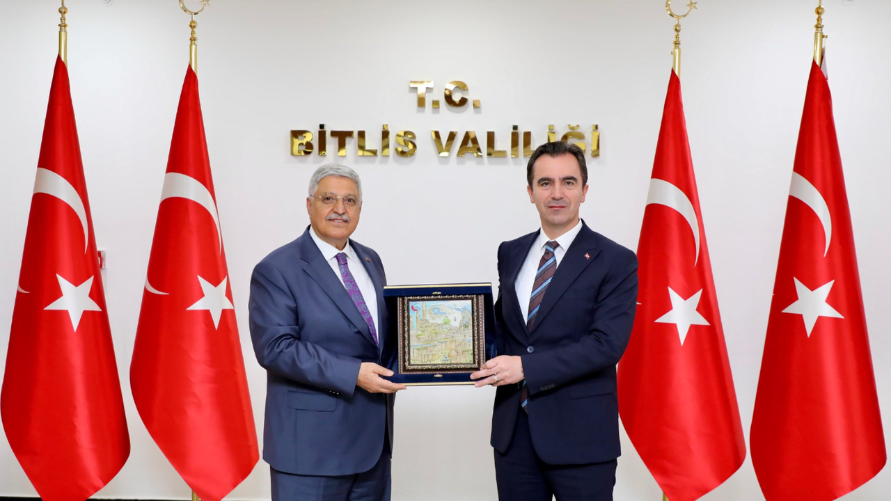 Cumhurbaşkanı Başdanışmanı Vedat Demiröz, Bitlis Valisi Ahmet Karakaya'yı makamında ziyaret etti. Valilik Şeref Defteri'ni imzalayan Demiröz, Vali Karakaya ile bir süre görüşerek Bitlis'in genel durumu, bölgenin gelişimi ve yürütülen çalışmalar hakkında istişarelerde bulundu.