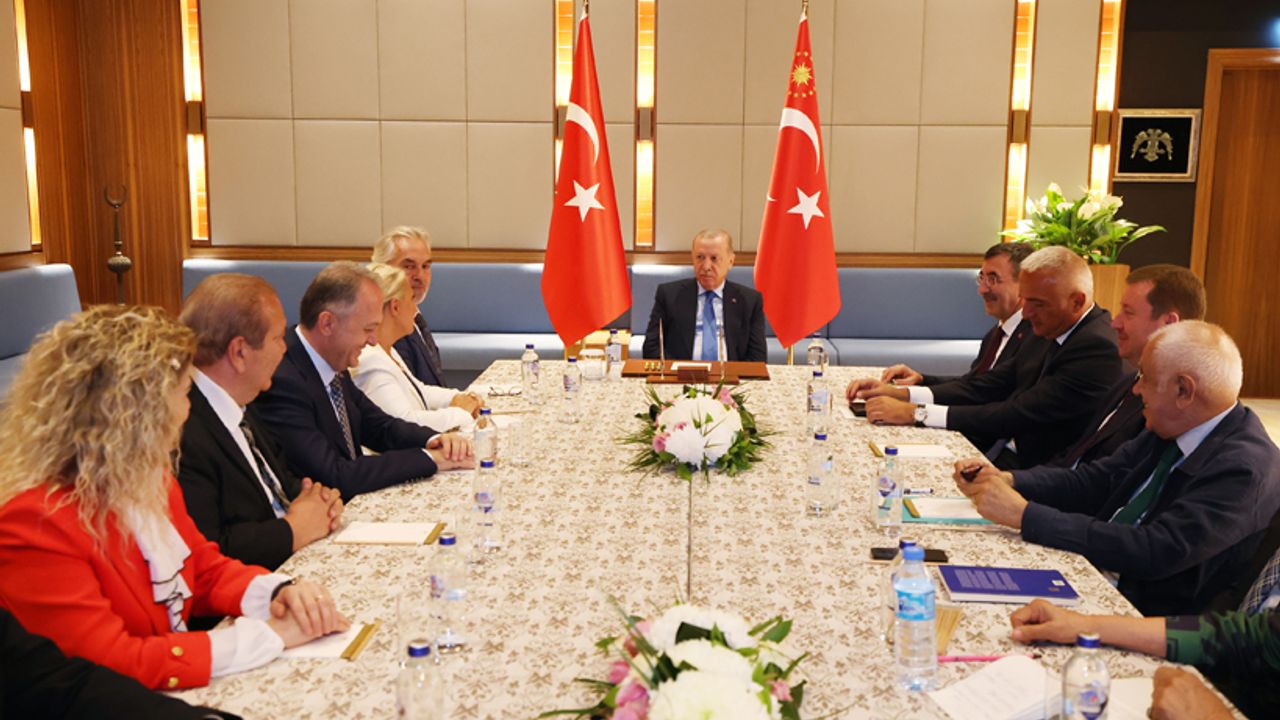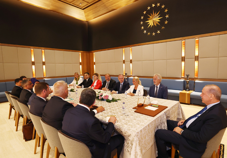 Cumhurbaşkanı Recep Tayyip Erdoğan, Kültür ve Sanat Politikaları Kurulu üyelerini Ahlat Cumhurbaşkanlığı Külliyesinde kabul etti.