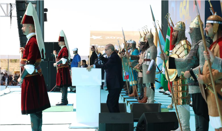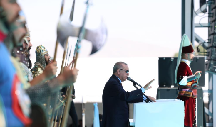"954 yıl önce Malazgirt Ovası’nda yazılan kahramanlık destanından aldığımız cesaret ve öz güvenle istikbale yürüyoruz"