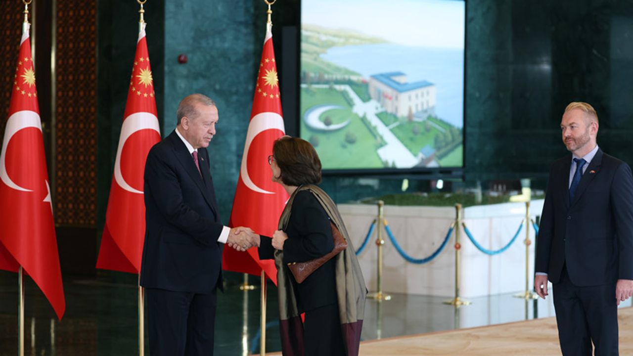 Törende TBMM Başkanı Numan Kurtulmuş, Cumhurbaşkanı Yardımcısı Cevdet Yılmaz, bakanlar, Genelkurmay Başkanı Orgeneral Selçuk Bayraktaroğlu ve kuvvet komutanları, yüksek yargı organlarının başkanları, Ankara Valisi Vasip Şahin, Ankara Büyükşehir Belediye Başkanı Mansur Yavaş, yabancı misyon temsilcileri ve çok sayıda davetli Cumhurbaşkanı Erdoğan’a bayram tebriklerini sundu. Tebrik kabulü sırasında dikkat çeken detay ise arka planda yer alan Ahlat Cumhurbaşkanlığı Külliyesi’nin görseli oldu. Cumhurbaşkanı Erdoğan’ın 30 Ağustos Zafer Bayramı’nda düzenlenen kabul töreninde de aynı görselin kullanılması, bu tercihin sembolik bir anlam taşıdığı yorumlarını beraberinde getirdi.