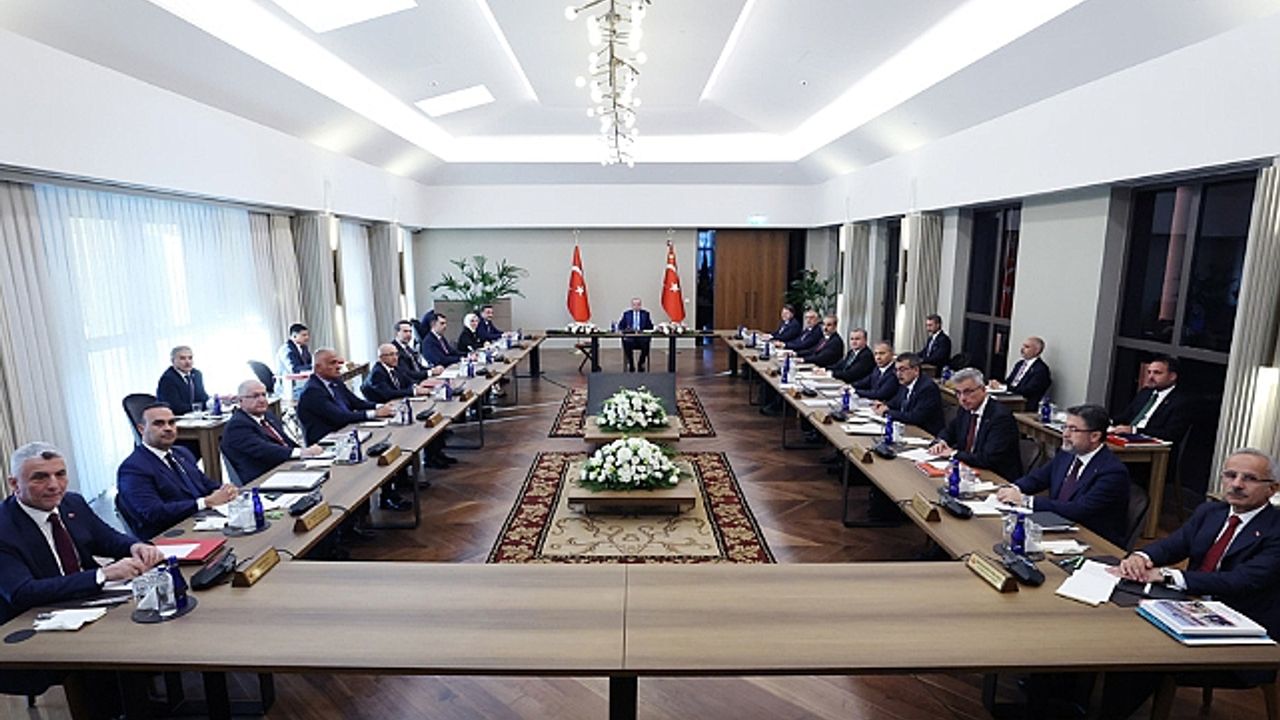 Cumhurbaşkanlığı Kabinesi, Cumhurbaşkanı Recep Tayyip Erdoğan’ın başkanlığında Bitlis'in Ahlat ilçesindeki Ahlat Cumhurbaşkanlığı Külliyesinde toplandı. Cumhurbaşkanı Erdoğan şuanda ise canlı yayında açıklamalarda bulunuyor.(Fotoğraf: Cumhurbaşkanlığı)