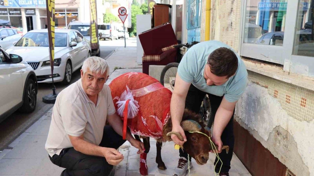 Erzurum’da ikamet eden Doktor Muhammet Enes Batman, nişanlısı Sema Coşkun için özel olarak süslediği kurbanlık koçu hazırlayıp ailesiyle birlikte Oltu’daki kız evine teslim etti. Yöre geleneğine göre nişanlı gençler, bayram öncesinde nişanlılarına süslenmiş kurbanlık koç hediye ediyor. Bu kapsamda damat adayı Muhammet Enes Batman, aldığı koçun boynuzlarına altın bilezik takarak onu özenle süsledi.