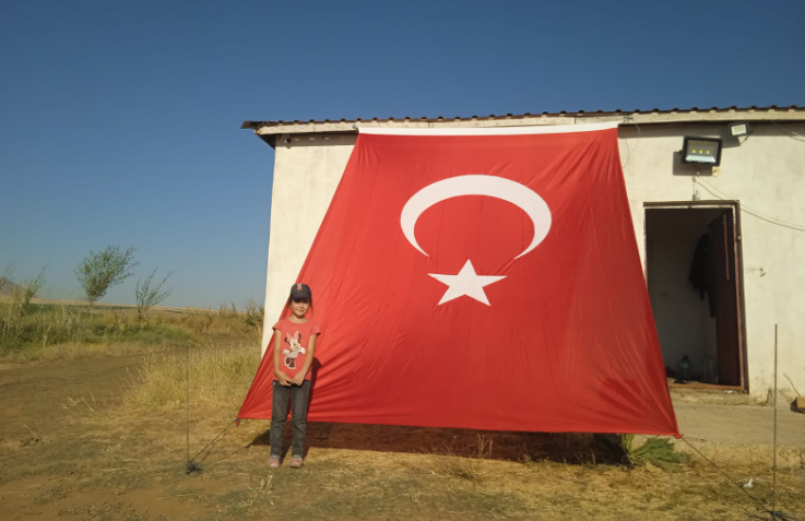 Bitlis’in Ahlat ilçesinde kırsal bir bölgede yer alan çiftlik binasına asılan dev Türk bayrağı, çevrede yaşayanların dikkatini çekti. Sıcak yaz güneşi altında parlayan bayrak, hem görsel etkisiyle hem de taşıdığı anlamla bölgedeki vatandaşların beğenisini topladı.