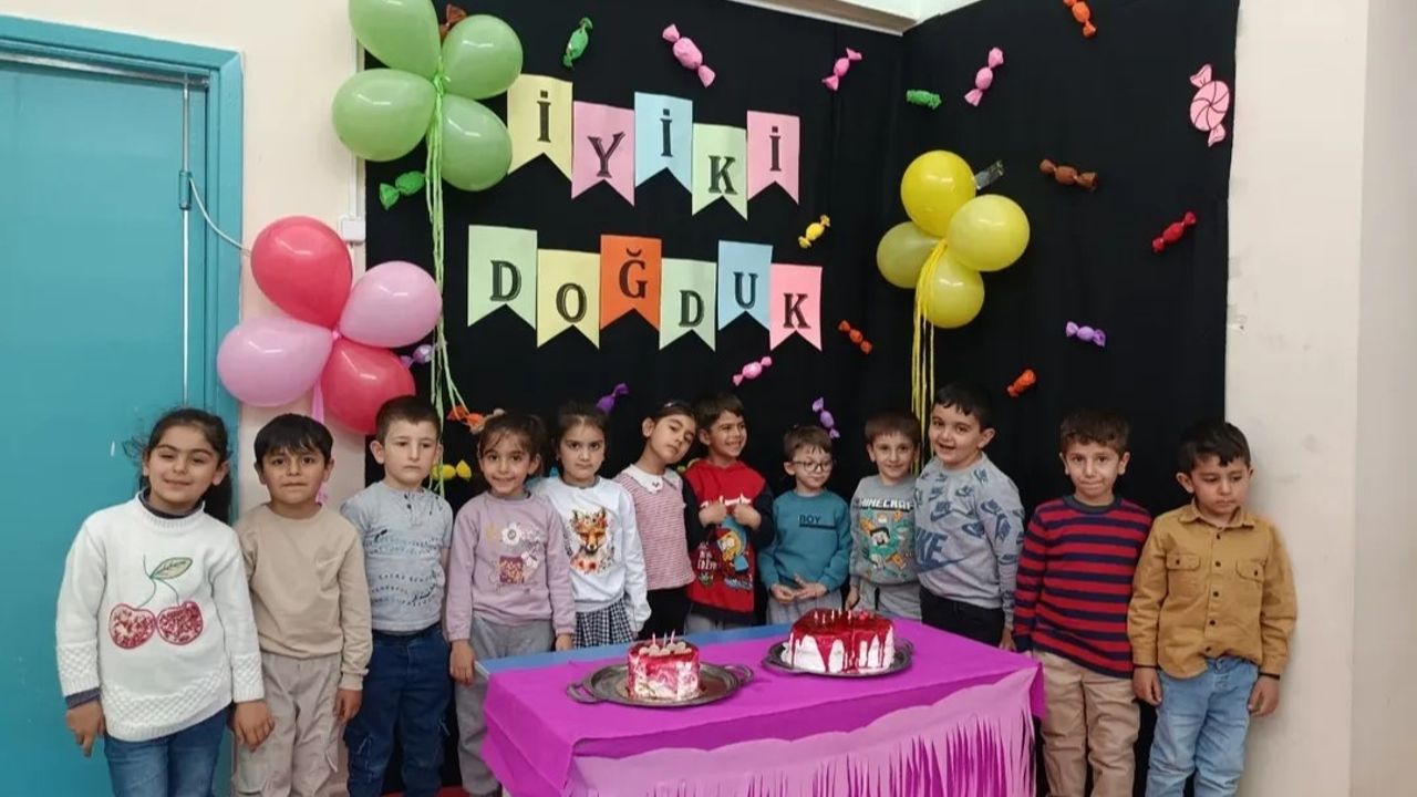 Öğrencilerin doğum günlerini kutlamak amacıyla hazırlanan etkinlikte, herkesin bir araya gelmesiyle büyük bir doğum günü pastası yapıldı.