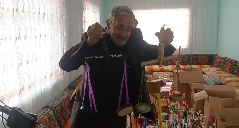 Bir elim çalışmıyordu ve sürekli titriyordu. Doktor da bana ‘el işleri yap’ dedi. Bende eve gelip ahşap işleriyle uğraştım. Ahşap işleriyle uğraştığımdan dolayı bu kolum şu an çok rahat çalışıyor ve titreme de yok. Yerde gördüğüm eski ahşap malzemeyi zımparayla temizleyerek değerlendiriyorum. Ahşap malzemeden süs eşyası yapıyorum. 6 yıl da yapmış olduğum ahşap oyuncakları ve süs eşyalarını sergileyip yetim ve kimsesiz çocuklar yararına satıp onlara bağışlamak istiyorum. Bu konuda Özalp Kaymakamı ve Van Valisi de öncü olmalarını bekliyorum" dedi.