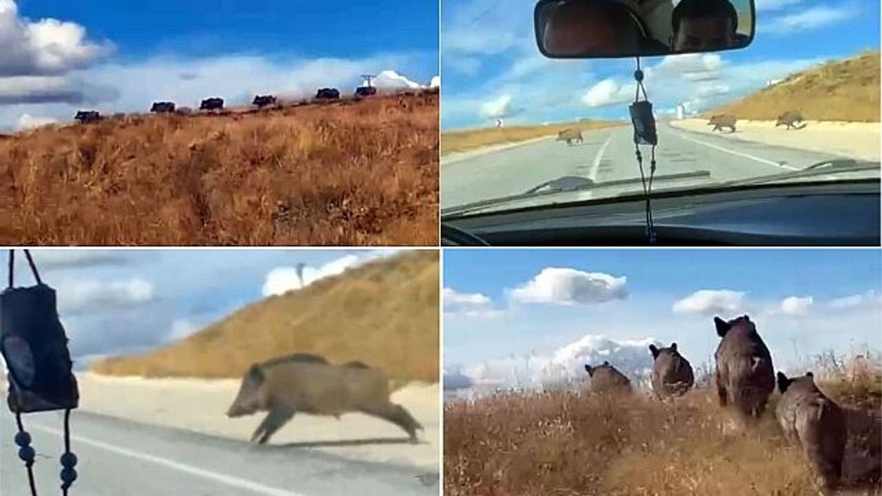 Bitlis’in Ahlat ilçesine inen domuz sürüsü cep telefonuyla kaydedildi. Bitlis’in Ahlat ilçesinde ilçeye bağlı Cemalettin Köyü’ne taziye ziyaretine giden yolcular Ahlat-Malazgirt yolunda domuz sürüsü ile karşılalaştı. Tek sıra halinde yolcuların aracının önünden geçen domuz sürüsü araçtaki yolcular tarafından cep telefonu kamerasıyla görüntülendi. Domuz sürüsünü gören yolcular büyük şaşkınlık yaşadı. Domuz sürüsü bir süre sonra gözden kayboldu.