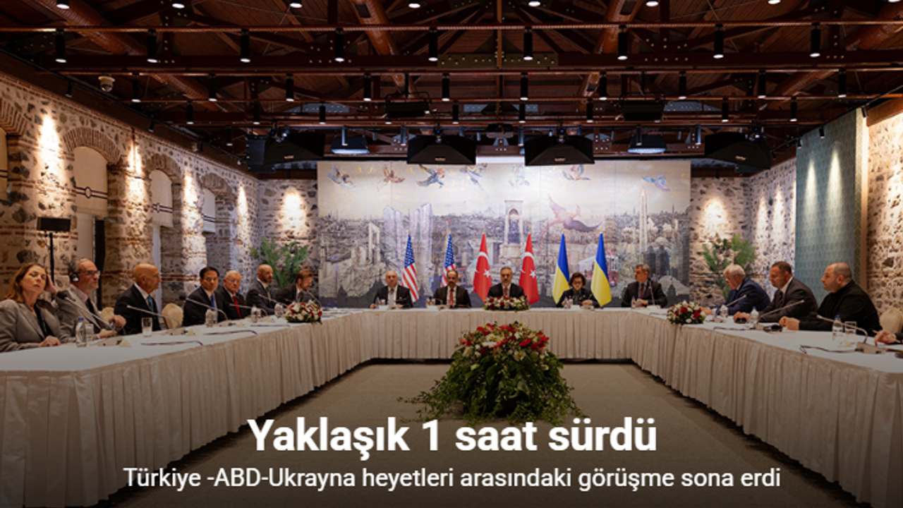 Ukrayna-Rusya arasındaki savaşın bitmesine yönelik İstanbul'da barış masası kuruldu. Türkiye-ABD-Ukrayna heyetleri arasındaki toplantı Dışişleri Bakanı Hakan Fidan'ın başkanlığında Cumhurbaşkanlığı Dolmabahçe Çalışma Ofisi'nde gerçekleştirildi. Görüşme yaklaşık 1 saat sürerken, heyetlerin ilerleyen dakikalarda açıklama yapması bekleniyor.