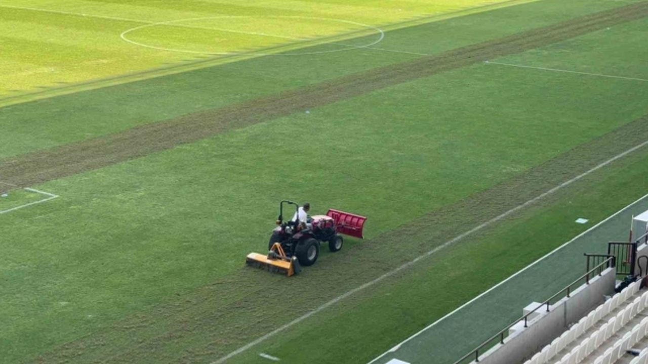 Gençlik ve Spor İl Müdürlüğü, Elazığspor'un üst üste deplasmanda oynayacağı 15 günlük süreci fırsat bilerek Atatürk Stadyumu zeminini bakıma aldı.