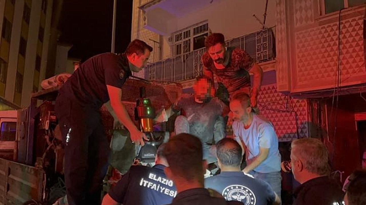 Elazığ'da ayağı beton pompasına sıkılan işçi, itfaiye ekipleri tarafından kurtarıldı.