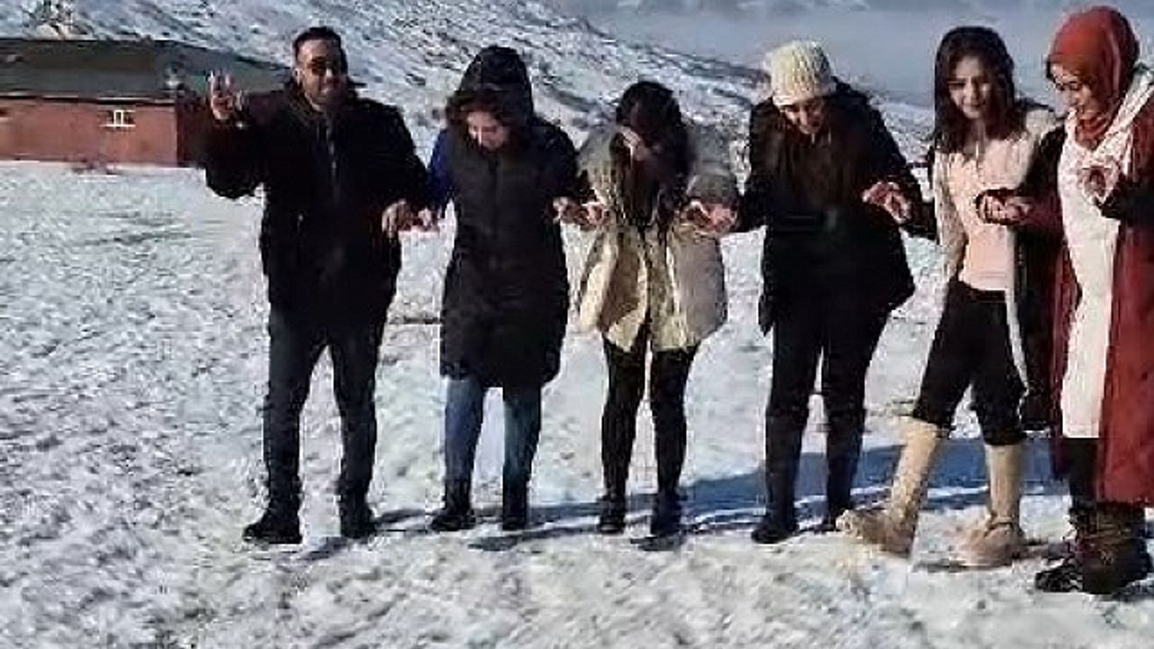 Elazığ'da Hazarbaba Kayak Merkezi'ndeki vatandaşların kar üzerinde halay çekmesi renkli görüntüler oluşturdu.