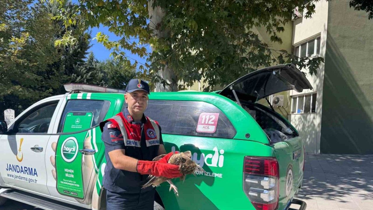 Elazığ’da yaralı halde bulunan yavru akbaba, jandarma ekiplerince koruma altına alındı.